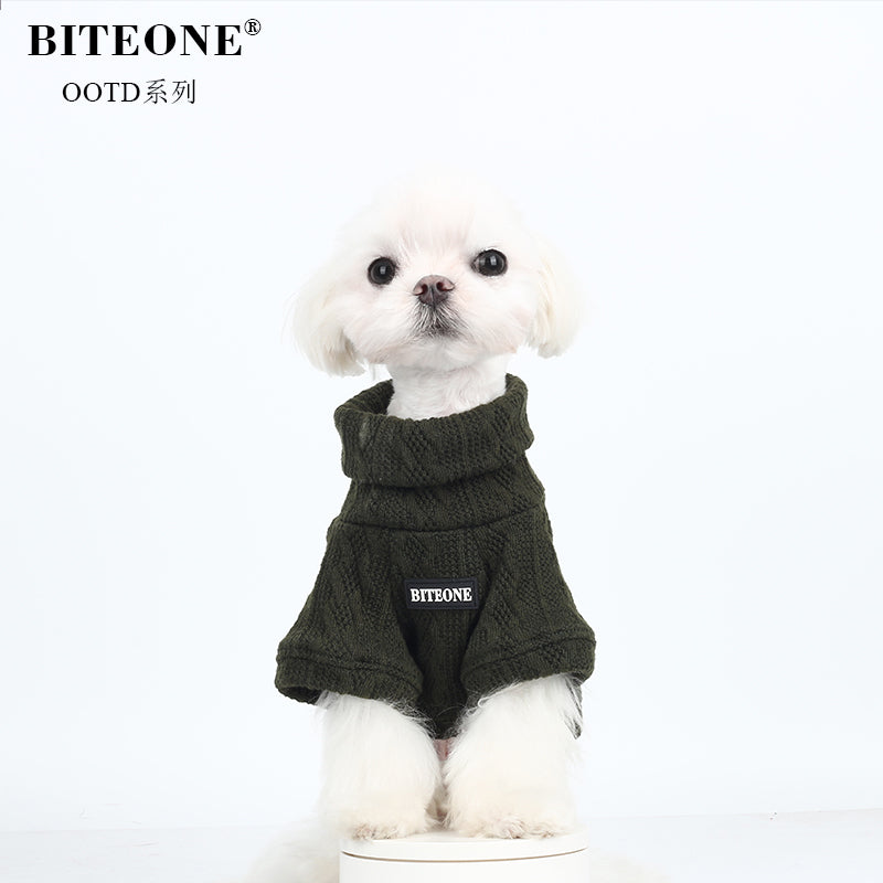 BITEONE [Deep Sea Green] Cat & Dog Autumn/Winter High-Neck Sweater
